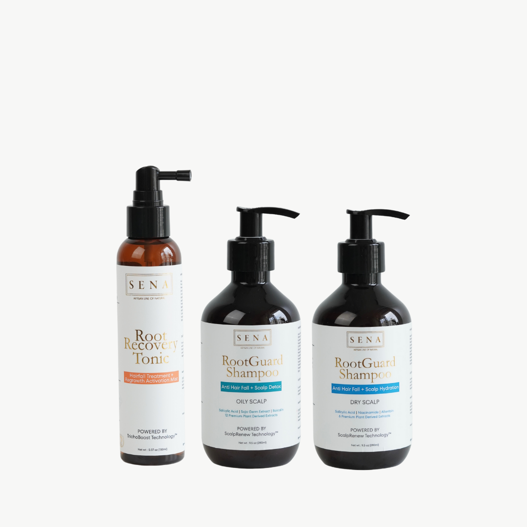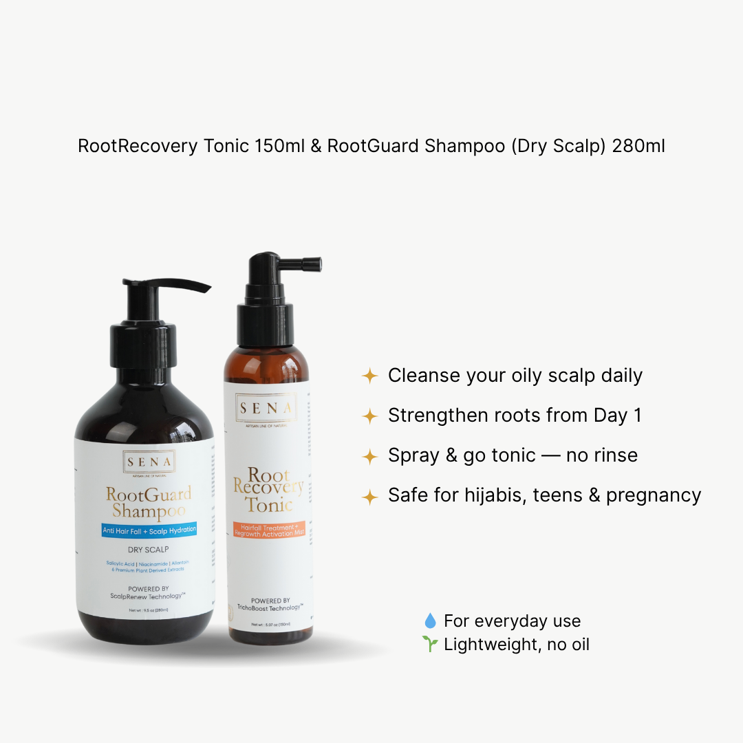 Bring your scalp back to its natural rhythm with the SENA Daily Recovery Duo™ — a lightweight yet powerful 2-step system designed for everyday use.